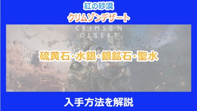 【紅の砂漠】硫黄石・水銀・銀鉱石・聖水の入手方法を解説|クリムゾンデザート