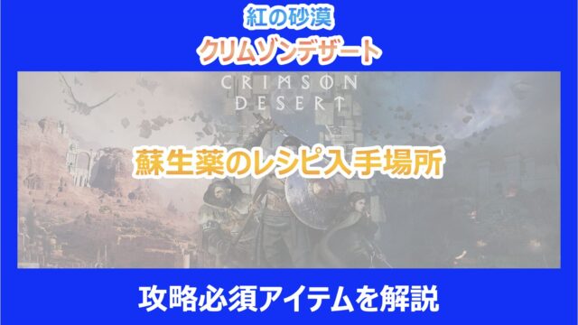 【紅の砂漠】蘇生薬のレシピ入手場所|攻略必須アイテムを解説|クリムゾンデザート