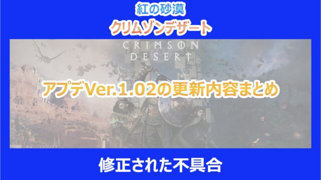 【紅の砂漠】アプデVer.1.02の更新内容まとめ|修正された不具合|クリムゾンデザート