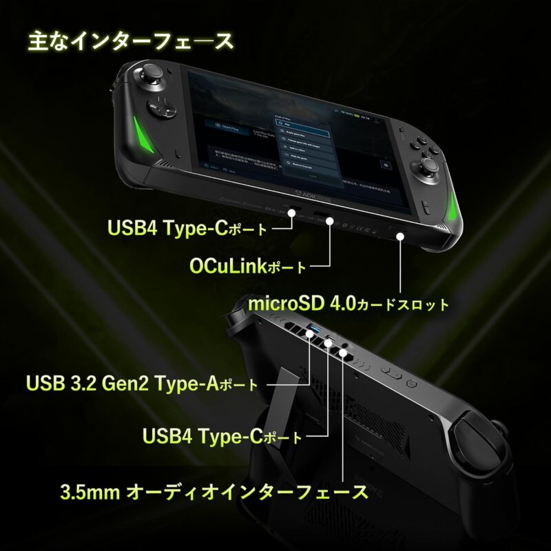 そして特筆すべきは「OCuLink」ポートの搭載です。 これは、外付けGPUボックス(eGPU)を、従来のThunderbolt(USB4)接続よりも高速かつ安定して接続するための規格です。 自宅ではハイエンドなデスクトップPC用グラフィックボードを接続し、外では本体のAPUで遊ぶ、といった使い分けが、より実用的になりました。