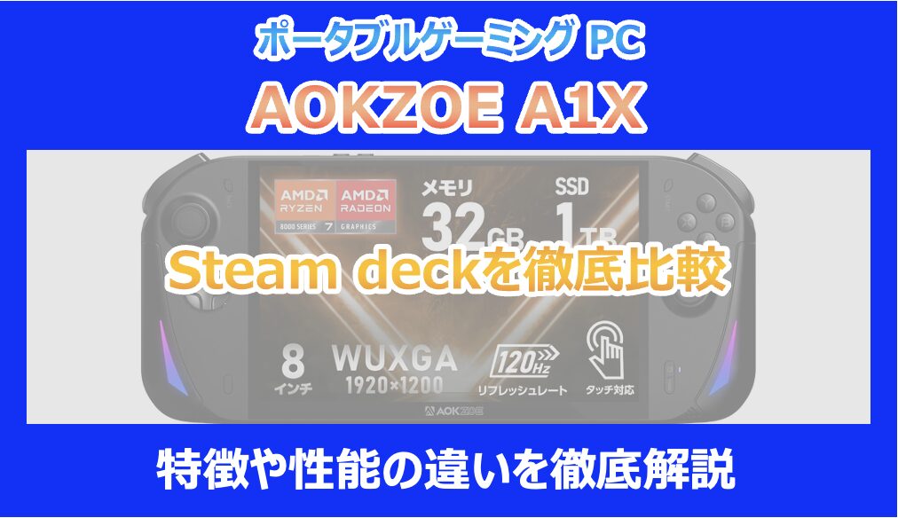 この記事を読んでいる方は、新しく登場したポータブルゲーミングPC「AOKZOE A1X」が気になっていて、定番の「Steam Deck」と比べてどうなのか、詳しく知りたいと思っているのではないでしょうか。