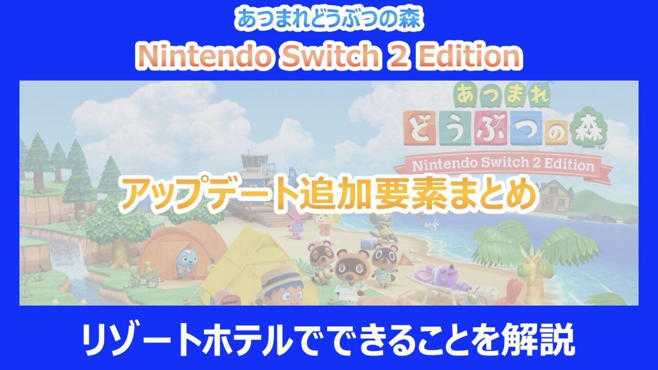 この記事を読んでいる方は、あつ森の最新アップデートVer3.0で追加された「リゾートホテル」の詳細や、細かな仕様変更が気になっていると思います。特に、久しぶりに島に戻ろうか迷っている方や、やり込み要素がどれくらい増えたのか知りたい方は多いのではないでしょうか。