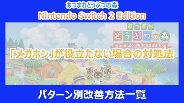 住民の位置がわかる便利アイテム「メガホン」ですが、これについては「Switch 2 エディション」等のハードウェアに関連した実装条件があるのではないかと推測されています。現段階の通常のSwitch環境ではショップに並んでいないケースが多く、購入条件や解放条件については今後の解析が待たれます。もし店頭に並んでいたら即買い推奨アイテムです。