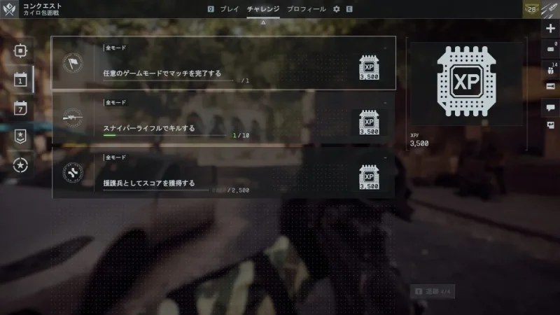 - 目的: キャリアXP、武器XP、各種任務(蘇生・補給・キル系)