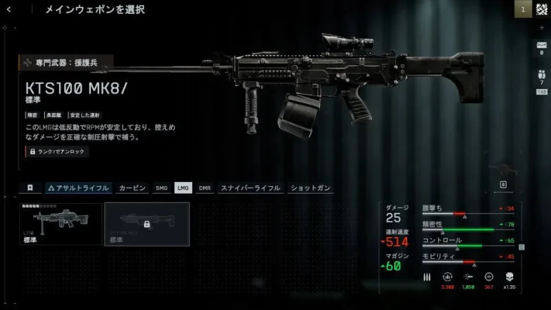 通常、こういったゲームでは、レベルを上げてアンロックされる武器の方が高性能な場合が多いですが、BF6ではこの初期武器が頭一つ抜けた性能を誇ります。