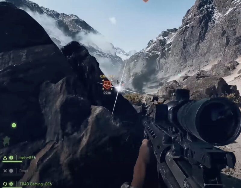BF6では、スポット(敵の位置をマークして味方に知らせる)機能が重要です。 スナイパーは敵をキルするだけでなく、発見した敵を片っ端からスポットすることで、味方チームに莫大な情報アドバンテージをもたらします。
