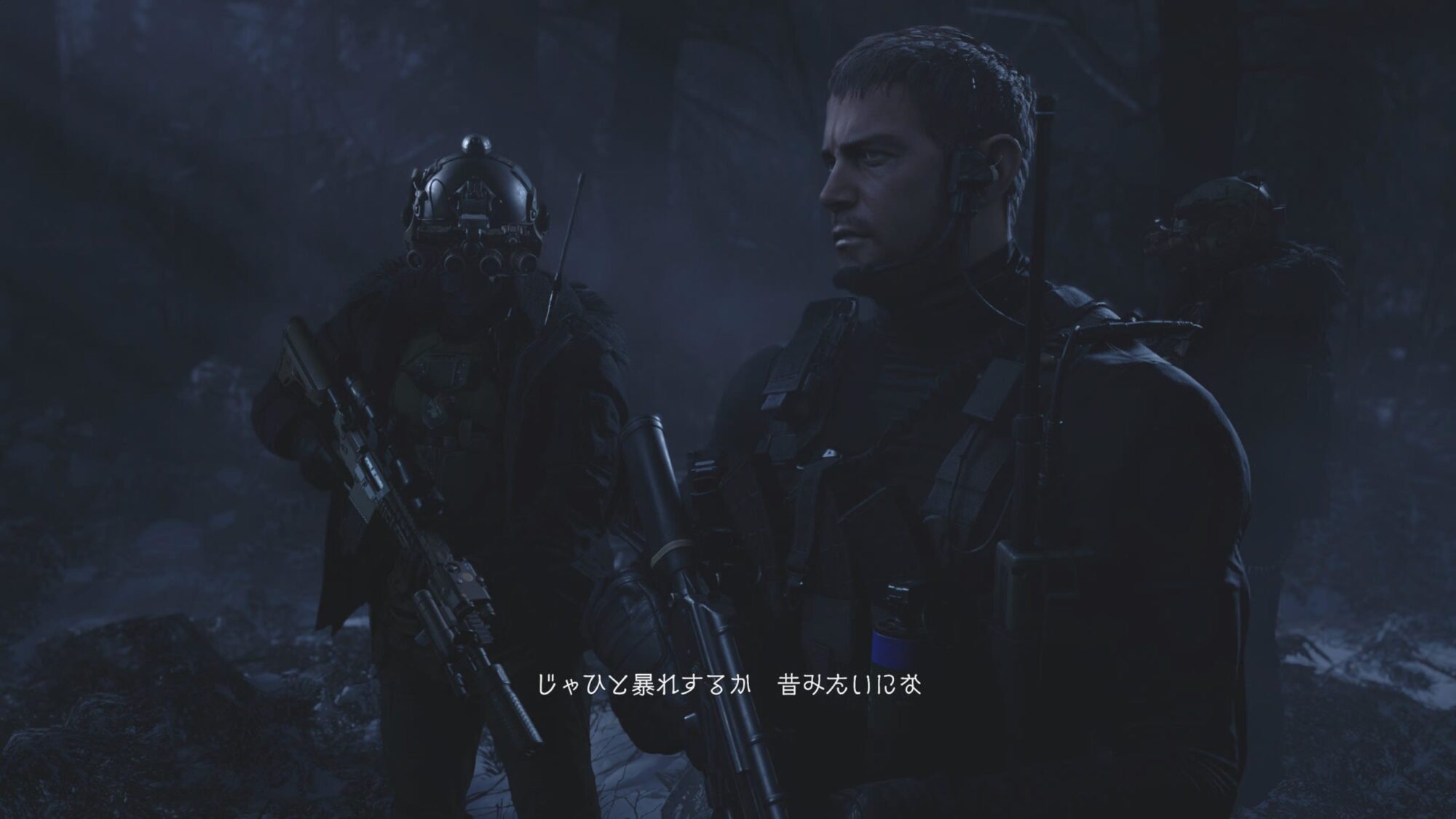 混乱するイーサンの前に姿を現したのは、かつてベイカー邸から彼らを救い出した英雄、クリス・レッドフィールドでした。クリスはイーサンの問いかけには答えず、倒れたミアに対してさらに容赦なく銃弾を撃ち込み、とどめを刺します。 「すまない、イーサン」 クリスはただ一言そう告げると、部下である精鋭部隊「ハウンドウルフ隊」に指示を出し、抵抗するイーサンを気絶させ、ローズと共に連行してしまいます。