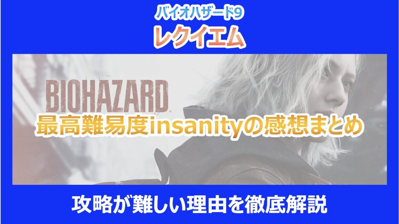この記事を読んでいる方は、バイオハザード9 レクイエムの最高難易度「insanity」の実際のプレイ感や、攻略が難しいと言われる理由が気になっていると思います。