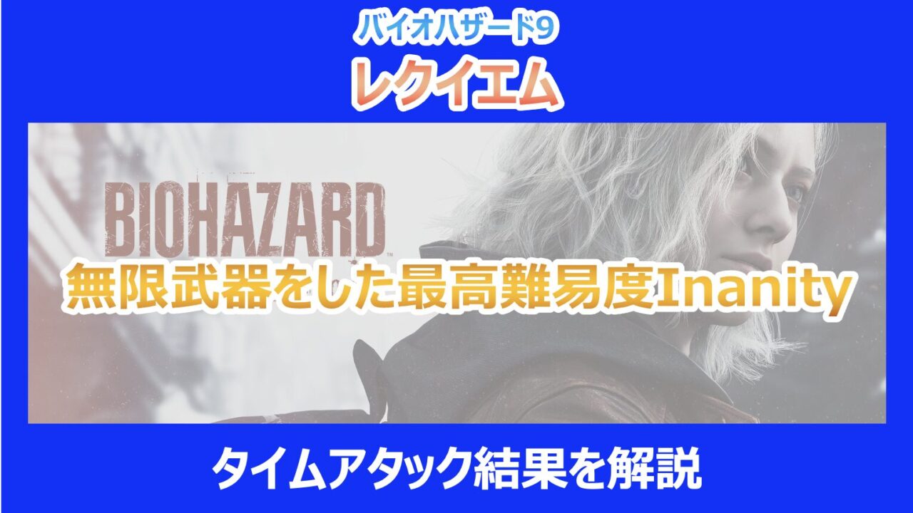 この記事を読んでいる方は、 バイオハザードレクイエムの無限武器を使用した最高難易度Inanityのタイムアタック結果や、 無限武器の有用性が気になっていると思います。
