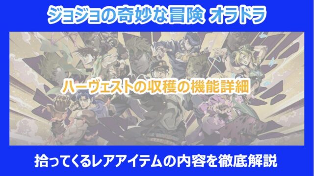 【オラドラ】ハーヴェストの収穫の機能詳細|拾ってくるレアアイテムの内容を徹底解説|ジョジョ
