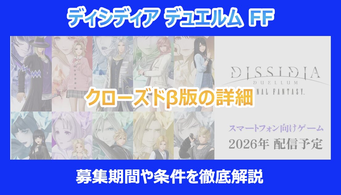 この記事を読んでいる方は「ディシディア デュエルム ファイナルファンタジー」のクローズドβテストに関して、特にその募集期間や参加条件、そしてゲームの最新情報について気になっていることと思います。