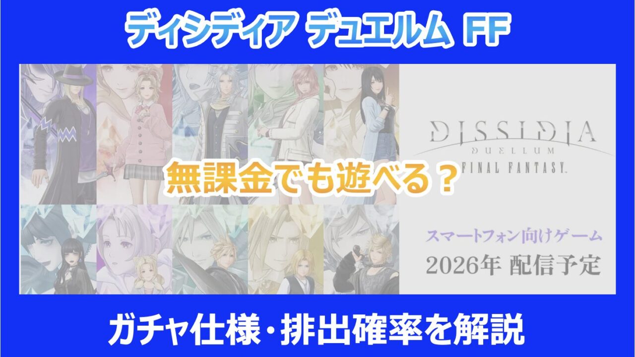 この記事を読んでいる方は、最新作「ディシディアデュエルムFF」が果たして無課金でも十分に楽しめるのか、そして気になるガチャの仕組みがどうなっているのかを詳しく知りたいと思っているはずです。