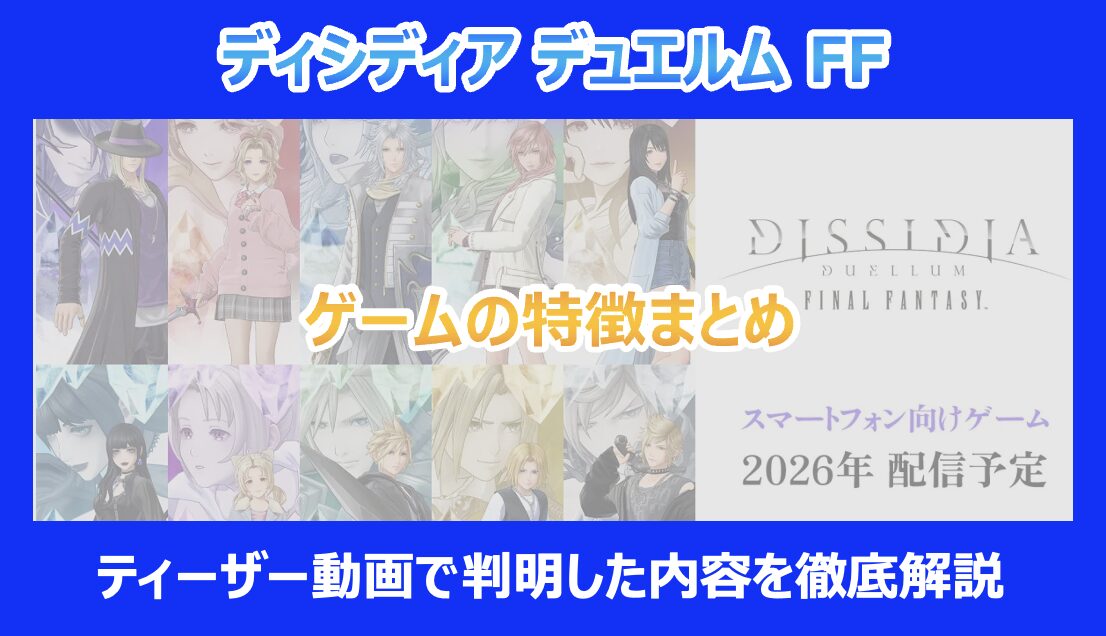 この記事を読んでいる方は『ディシディア デュエルム ファイナルfantasy』の特徴や、ティーザー動画で公開された内容が気になっていると思います。