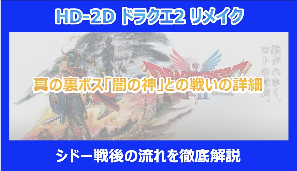 この記事を読み終える頃には、ドラクエ2リメイクで追加されたシドー戦後の衝撃的な展開と、真の裏ボス「闇の神」の全貌についての疑問が解決しているはずです。