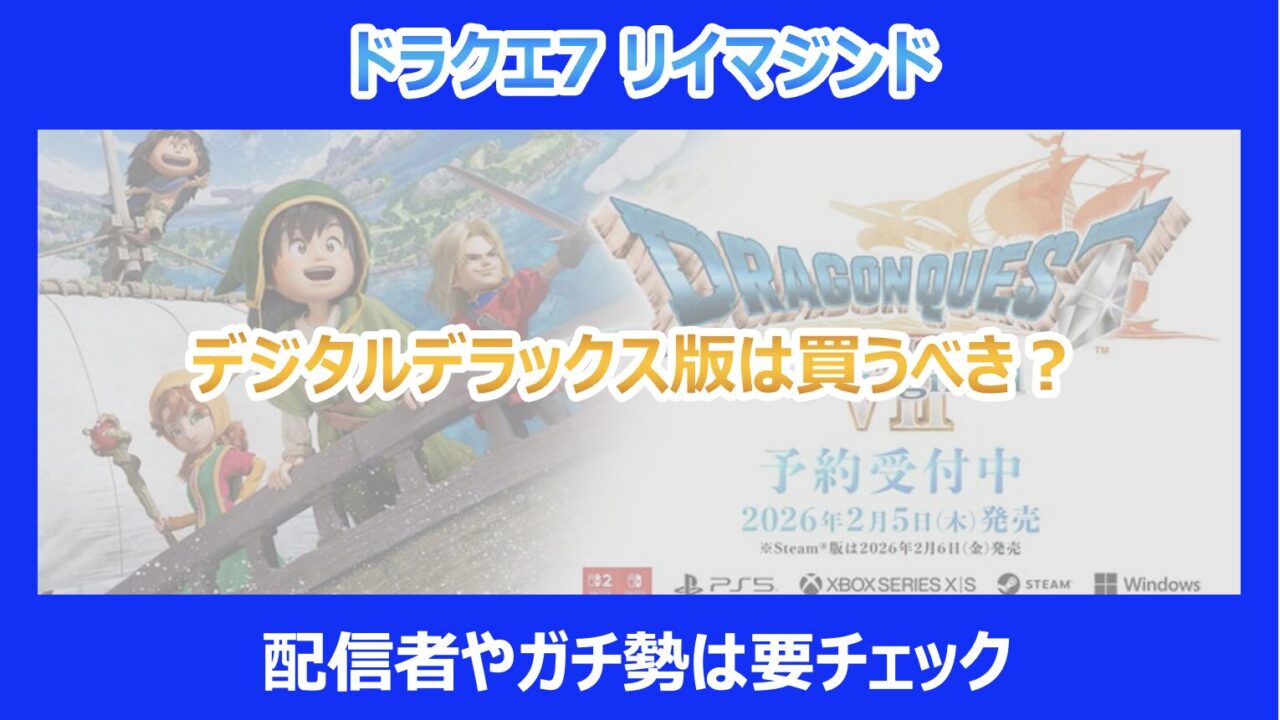 この記事を読んでいる方は、2026年2月5日に発売が迫る『ドラゴンクエストVII Reimagined(リイマジンド)』の購入エディションで迷われていることと思います。特に、「デジタルデラックス版」につく特典やアーリーアクセス権が、自分にとって本当に必要なのか、価格差に見合う価値があるのか気になりますよね。