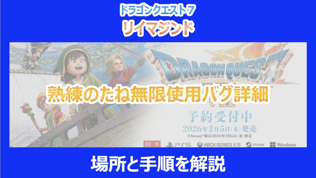 『ドラゴンクエストVII リイマジンド』(以下、DQ7リイマジンド)において、現在プレイヤー間で大きな波紋を呼んでいるのが「熟練のたね無限使用バグ」です。