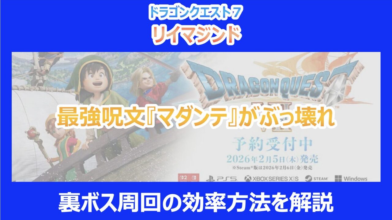 この記事を読んでいる方は、リメイク版『ドラゴンクエストVII(DQ7リイマジンド)』において「マダンテがどれほど強いのか」「裏ボス周回でどう活用すればいいのか」といった点が気になっていると思います。 かつてのオリジナル版から仕様が変更されている部分もあり、現在の環境で最高効率を出すためには正しい知識が必要です。