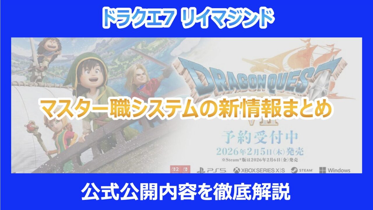 この記事を読んでいる方は、2026年発売予定の『ドラゴンクエストVII エデンの戦士たち リイマジンド』における最新の職業システムや、特に「マスター職」と呼ばれる新要素が気になっていることでしょう。