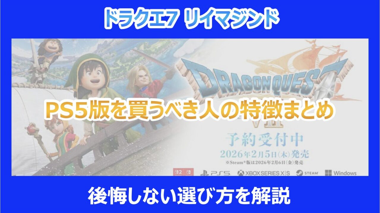 この記事を読んでいる方は、待望の『ドラゴンクエストVII エデンの戦士たち リイマジンド(DQ7リメイク)』をどのハードで遊ぶべきか、特にPS5版を買うメリットがどこにあるのかが気になっていると思います。