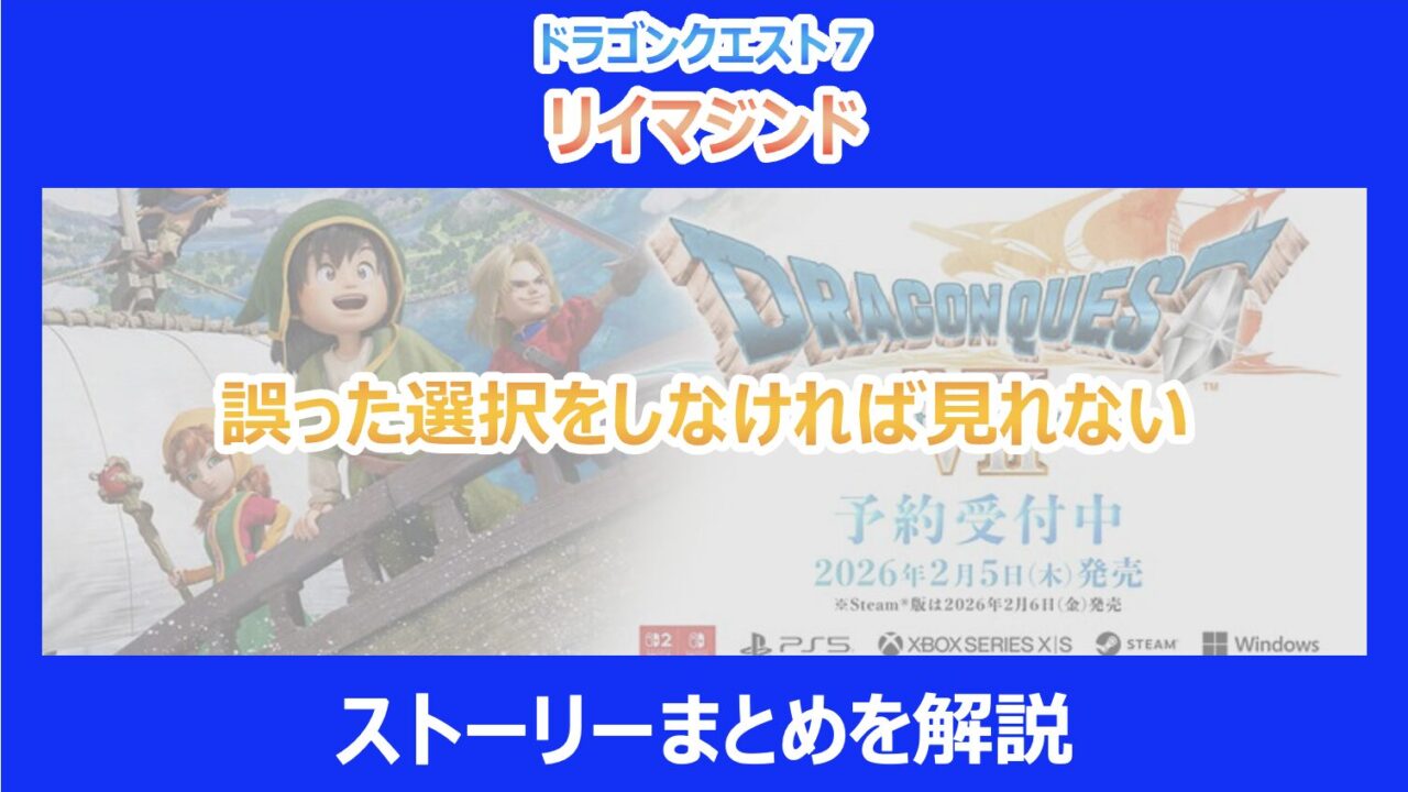 この記事を読んでいる方は、「ドラクエ7リイマジンド」の膨大なシナリオ分岐において、取り返しのつかない要素や、特定の選択肢を選んだ場合のみ発生するレアなイベントシーンが気になっていると思います。特に今作は「リイマジンド(再構築)」と銘打たれているだけあり、過去作とは異なる結末が用意されている箇所も多数存在します。