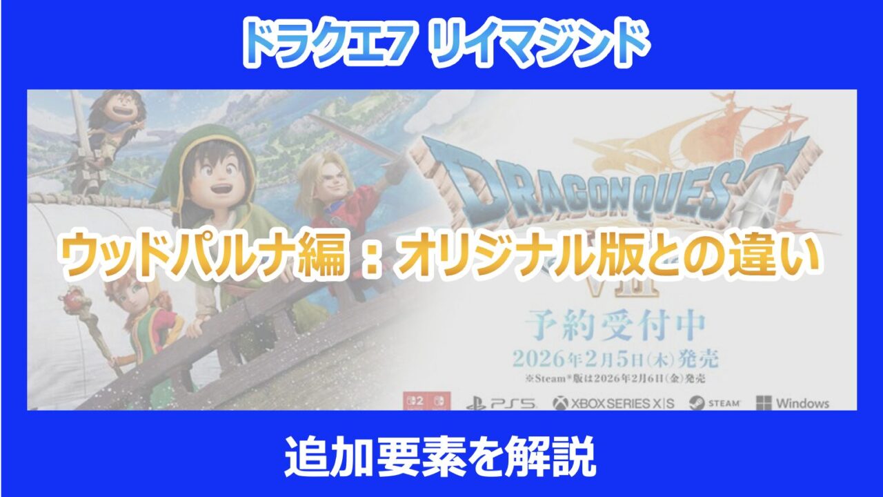 この記事を読んでいる方は、最新作『ドラゴンクエストVII リイマジンド』において、最初の島「ウッドパルナ」で追加されたというルート分岐や、オリジナル版(PS版・3DS版)との細かな仕様変更が気になっていると思います。 特に、あの悲劇的なヒロイン・マチルダを救う道があるのか、それによって現代がどう変わるのかという点は、全ドラクエファンが注目するポイントです。