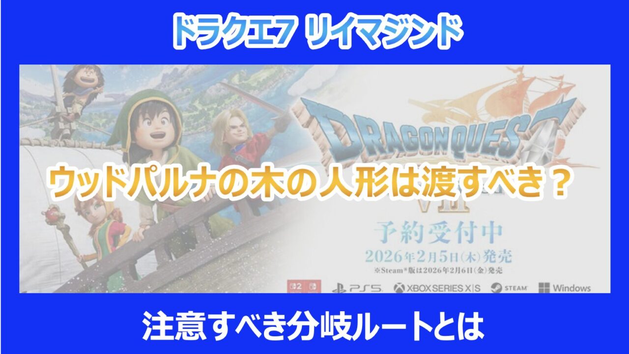 この記事を読んでいる方は、リメイク版『ドラゴンクエストVII エデンの戦士たち(リイマジンド)』における最初の冒険の舞台、ウッドパルナでの選択肢が気になっていると思います。特に「木の人形」をパトリックに渡すべきかどうか、その判断が物語にどのような影響を及ぼすのかは、多くのプレイヤーが頭を悩ませるポイントです。