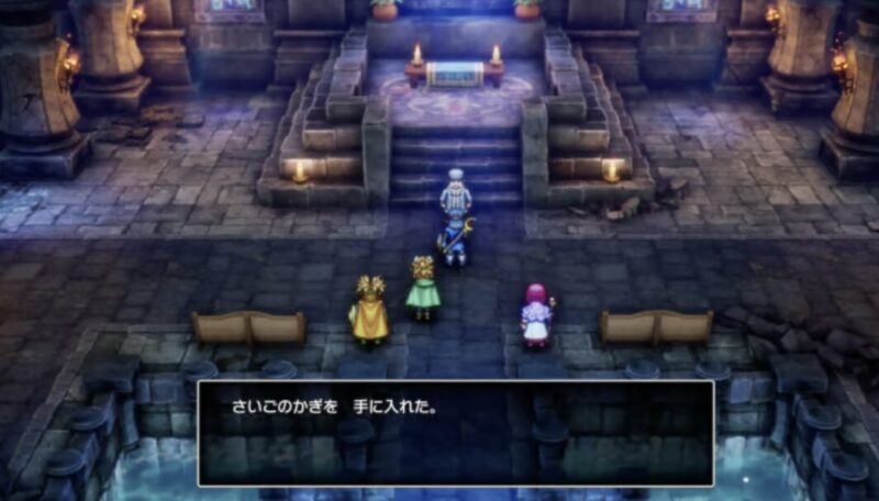 ほこらの中には神父(セーブポイント)がおり、彼に話しかけることで、これまでの旅の労をねぎらう言葉と共に「さいごのカギ」を授けてもらえます。 ファミコン版など過去のリメイク作品でもこの流れは共通しており、HD-2D版でも同様だと思われます。