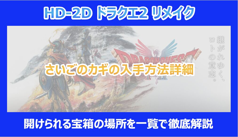 この記事を読み終える頃には、ドラクエ2リメイクにおける「さいごのカギ」の入手方法、そして開けられる全ての場所と、その中身(アイテム)の重要性についての疑問が解決しているはずです。
