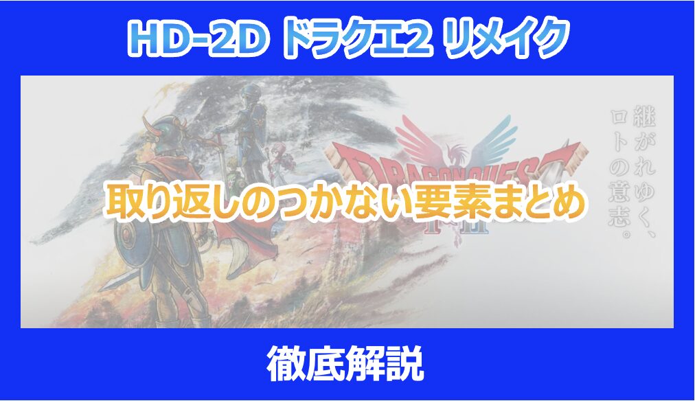この記事を読んでいる方は、2025年発売予定のHD-2D版『ドラゴンクエストI&II』、特に『ドラゴンクエスト2 悪霊の神々』をプレイするにあたり、「取り返しのつかない要素」がないか気になっていると思います。