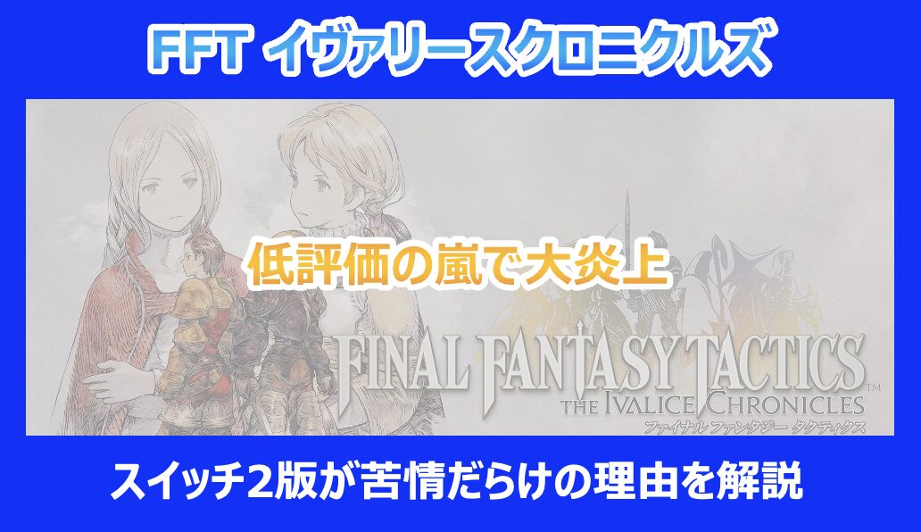 この記事を読んでいる方は、2025年9月30日に発売された待望のリメイク作「ファイナルファンタジータクティクス イヴァリース クロニクルズ」のNintendo Switch 2版が、なぜレビューサイトで低評価の嵐に見舞われているのか、その理由が気になっているのではないでしょうか。
