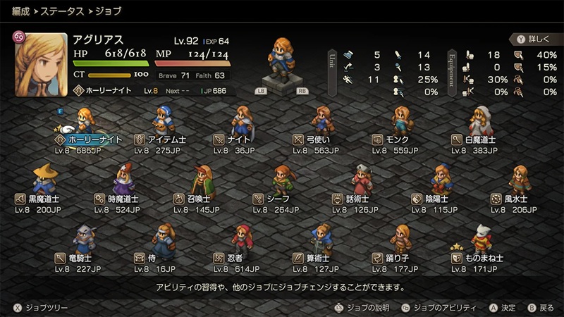 オールモンク編成で序盤を駆け抜けた後、その高いステータスと豊富なJpを活かして、さらに強力な上位ジョブを目指すことができます。 モンクはあくまで強力な土台であり、ここからキャラクターをどう成長させていくかを考えるのもFFTの醍醐味です。