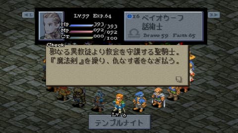ベイオウーフは魔法剣によるサポート能力だけでなく、自身のステータスも優秀です。 テンプルナイトは騎士系のジョブであり、HPや物理攻撃力の成長率が高いです。 そのため、魔法剣で敵を無力化しつつ、通常攻撃でも十分なダメージを与えることができます。 どんなパーティ構成にも組み込みやすい、汎用性の高さが彼の最大の魅力と言えるでしょう。