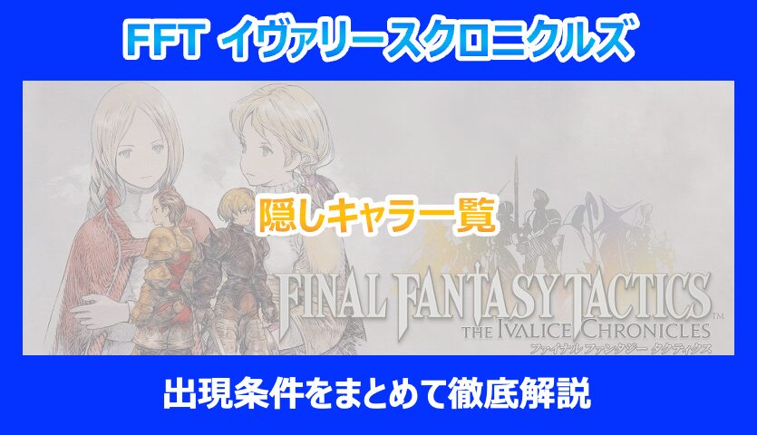 この記事を読んでいる方は、待望のFFTリメイク「イヴァリースクロニクルズ」に登場する隠しキャラの種類や、どうすれば仲間にできるのかが気になっているのではないでしょうか。