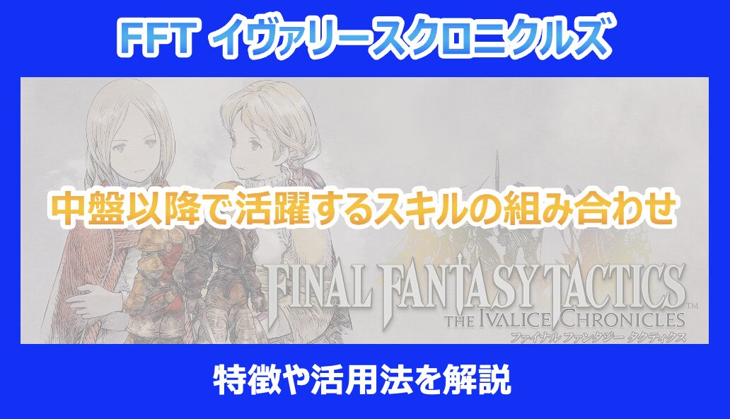 今回は、「ファイナルファンタジータクティクス イヴァリース クロニクルズ」の中盤以降で活躍する、強力なスキルの組み合わせについて解説しました。