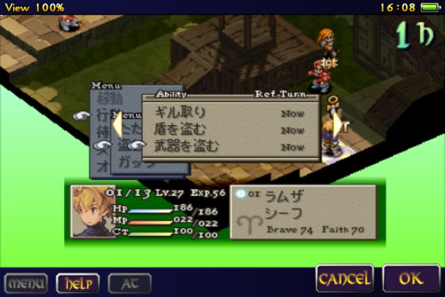 1. 準備: 出撃前に、最低でも「アクセサリを盗む」「鎧を盗む」を習得したシーフを1~2名用意しておきましょう。 ラムザの「さけぶ」でシーフのBraveを上げておくと、成功率が安定します。