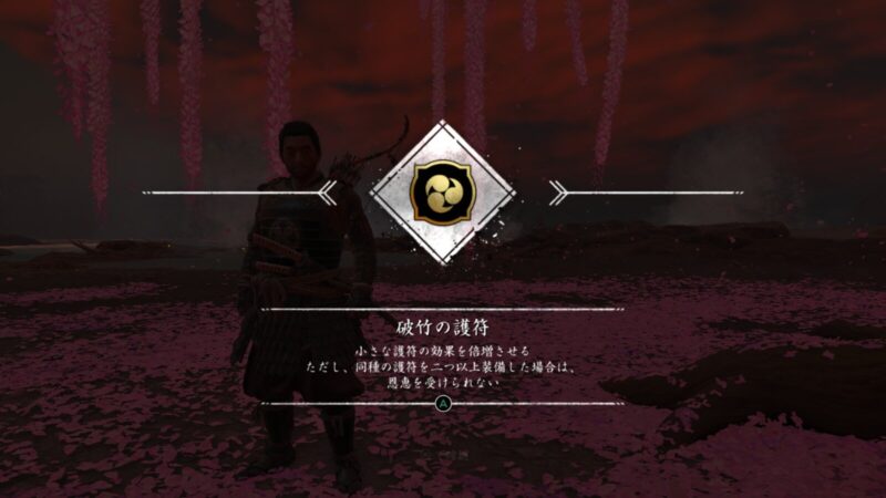 数ある護符の中でも、まずは素材の獲得数を増加させるものを最優先で入手しましょう。 序盤の少しの手間が、後々の膨大な時間節約に繋がります。 これは、前作「Ghost of Tsushima」をプレイした方なら、その重要性が痛いほどわかるはずです。