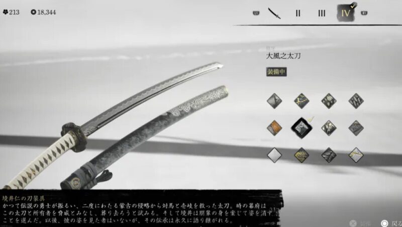 • 大風の太刀(おおかせのたち):イベントの核心となる刀です。その刃には、嵐を鎮め、道を切り開くかのような力が宿っています。これは、仁が巻き起こした「大風」が、対馬だけでなく蝦夷地にも影響を与え、その後の時代を動かしたことを象徴しています。