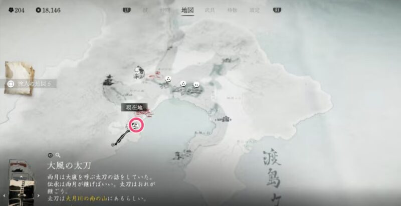 「大風の太刀」イベントが発生する場所は、『Ghost of Yōtei』の最終エリアにあります。ゲームのメインストーリーを進め、この最終エリアをアンロックすることが最初の条件となります。最終エリアに到達すると、広大なマップが広がり、一見どこから探索すれば良いか迷うかもしれません。