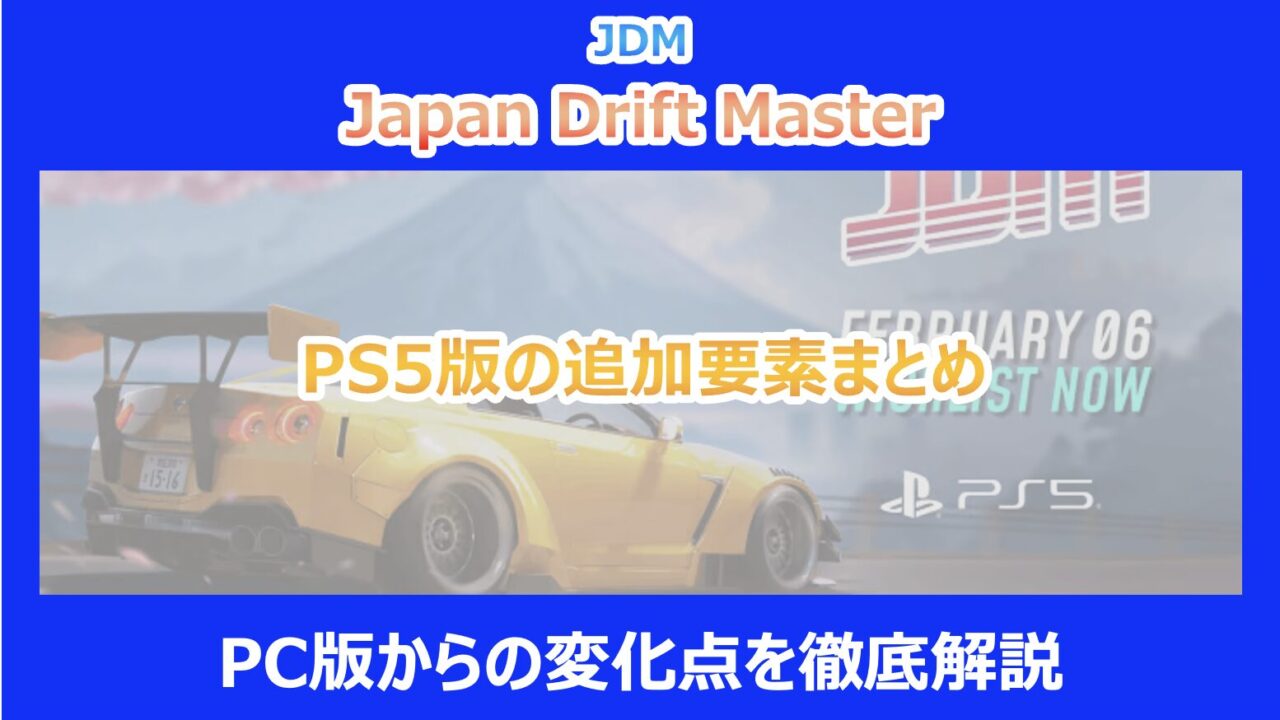 この記事を読んでいる方は、PS5版「JDM: Japan Drift Master(ジャパンドリフトマスター)」の発売日や追加要素が気になっていると思います。