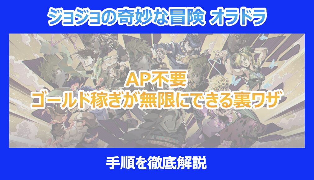 この記事を読んでいる方は、2025年9月25日にリリースされた株式会社Gumi期待の新作『ジョジョの奇妙な冒険 オラオラオーバードライブ』(オラドラ)で、深刻なゴールド不足、あるいはAP(スタミナ)不足に悩んでいるのではないでしょうか。 「キャラ育成が追いつかない」「APが瞬時に溶けてやることがない」そういった声が私の元にも数多く届いています。