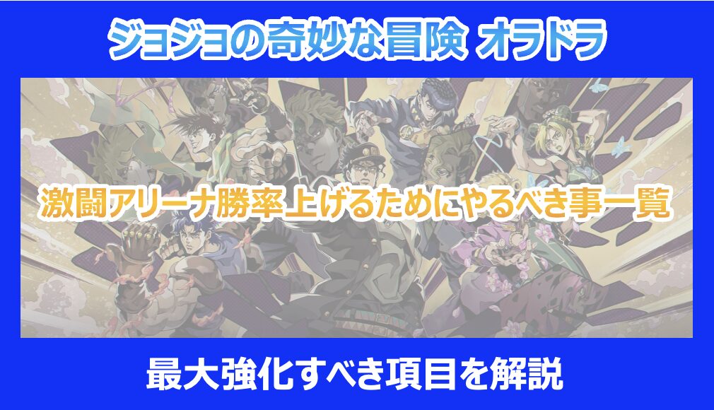 この記事を読んでいる方は、2025年9月25日にリリースされたGumi期待の新作『ジョジョの奇妙な冒険 オラオラオーバードライブ』(オラドラ)で、「激闘アリーナでなかなか勝率が上がらない」「対戦相手が強すぎて歯が立たない」といった悩みを抱えているのではないでしょうか。 オラドラの醍醐味の一つである「激闘アリーナ」は、プレイヤー同士の戦略と育成が試される場所です。