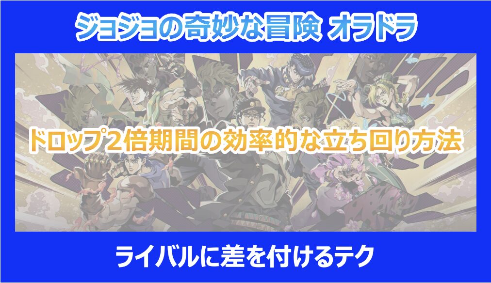この記事を読んでいる方は、2025年9月25日にリリースされたGumiの新作「ジョジョの奇妙な冒険 オラオラオーバードライブ」(オラドラ)で、現在開催中の「ドロップ2倍期間」をどう効率的に立ち回るべきか、気になっていると思います。 特にリリースから約1ヶ月が経過し、初期の育成リソースが枯渇し始め、ライバルとの戦力差が開きつつある今、このイベントの重要性は非常に高いです。
