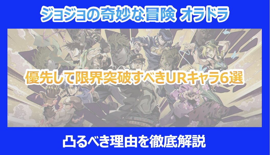 この記事を読んでいる方は、2025年9月25日にリリースされたばかりの「ジョジョの奇妙な冒険 オラオラオーバードライブ」(以下、オラドラ)で、どのURキャラを優先して限界突破(凸)するべきか、悩んでいるのではないでしょうか。 せっかく手に入れた最高レアリティのURキャラ、貴重な育成素材は最も効果的に使いたいですよね。