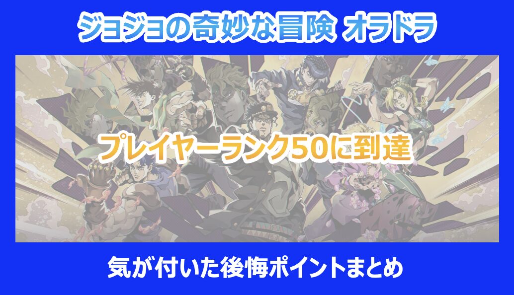 この記事を読んでいる方は、ジョジョの奇妙な冒険 オラオラオーバードライブ(オラドラ)のプレイヤーランクを上げることで、何か後悔するようなデメリットがあるのではないかと気になっていると思います。