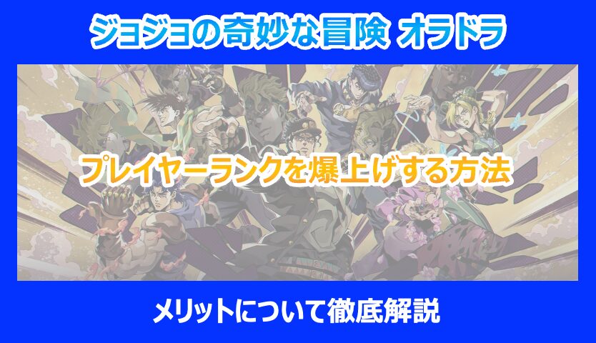 今回は、リリースされたばかりの新作「ジョジョの奇妙な冒険 オラオラオーバードライブ」における、プレイヤーランクを爆上げする方法とそのメリットについて徹底的に解説しました。