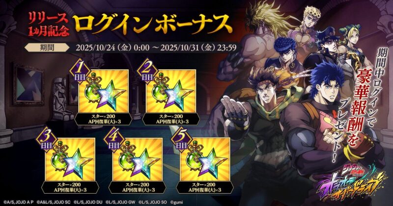 キャンペーン期間中、10月24日の0時から5日間にわたり、特別なログインボーナスが実施されます。