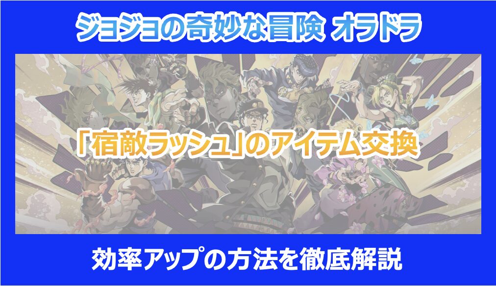 この記事を読んでいる方は、2025年9月25日にリリースされた株式会社Gumiの新作スマホゲーム『ジョジョの奇妙な冒険 オラオラオーバードライブ』(通称オラドラ)の現行イベント、「宿敵ラッシュ」におけるアイテム交換の効率について、特に「ものすごく効率が良い」という噂の真相や、具体的な立ち回りについて気になっていることと思います。