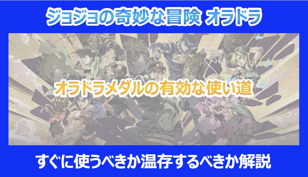 この記事を読んでいる方は、リリースされたばかりのスマートフォンゲーム『ジョジョの奇妙な冒険オラオラオーバードライブ』で、新イベント「トライアドバトル」から手に入れた「オラドラメダル」の使い道や、このアイテムが一体どのような特徴を持つのか、そして今使うべきなのか温存すべきなのか、といった疑問を抱えていることと思います。
