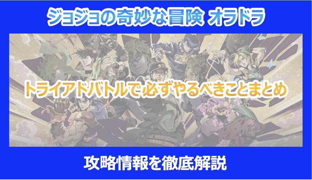 この記事を読んでいる方は、「ジョジョの奇妙な冒険オラオラオーバードライブ」の新イベント「トライアドバトル」の攻略法や、イベントを最大限に楽しむための情報、そしてどの編成で挑むべきかといった、深い攻略のヒントが気になっていると思います。