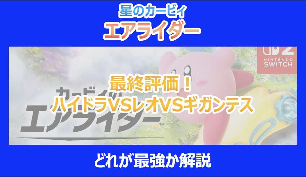 今回は、エアライダーにおける3大伝説マシン「ハイドラ」「レオ」「ギガンテス」について、徹底的な比較と解説を行いました。